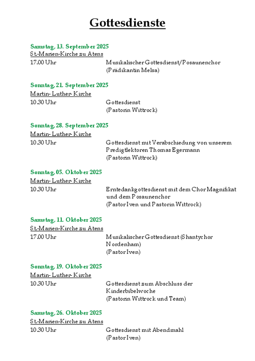 Neu ist seit vergangenem Jahr, dass Pastorin Wittrock und Pastor Iven von an nun im Wechsel die zweijährigen Konfirmandenjahrgänge begleiten werden. Der Unterricht dieses Konfirmandenjahrgangs 2025-27 findet in der Atenser Diele mit Pastor Iven statt.